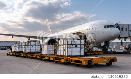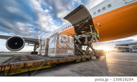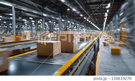 Modern warehouse with automated conveyor belts transporting packages neatly arranged