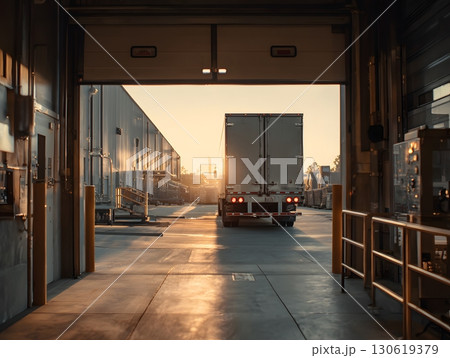 Efficient trucks transporting goods in warehouse with stacked boxes