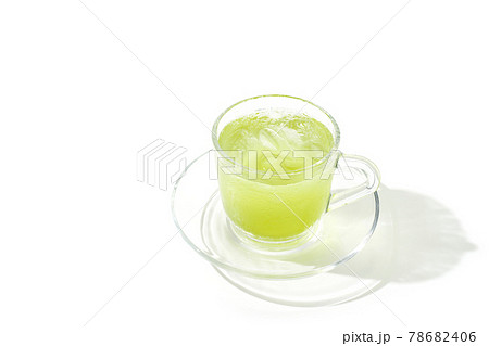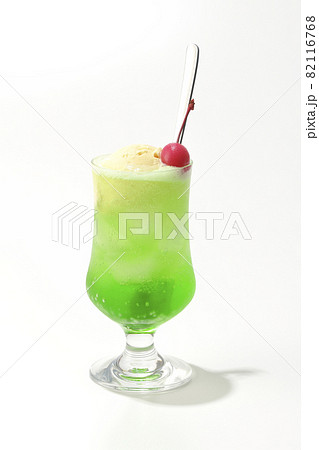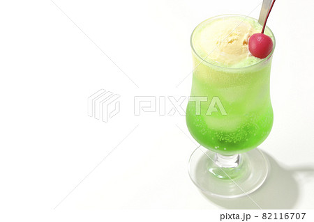 用白色背景的櫻桃拍攝的甜瓜奶油蘇打水