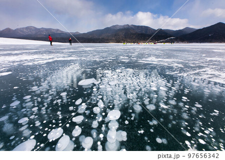 尋找在冬季從Kamikochi Taisho池塘加冕雪的Yakedake