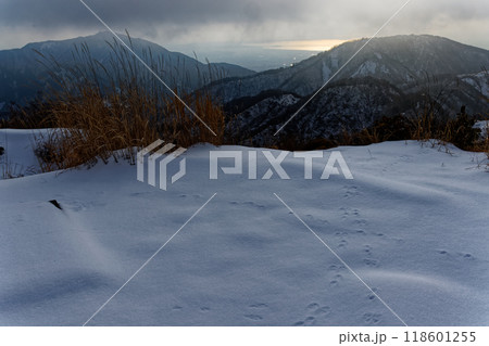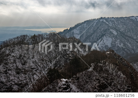 冬天從丹澤表嶺看到的山能島、大山和湘南海