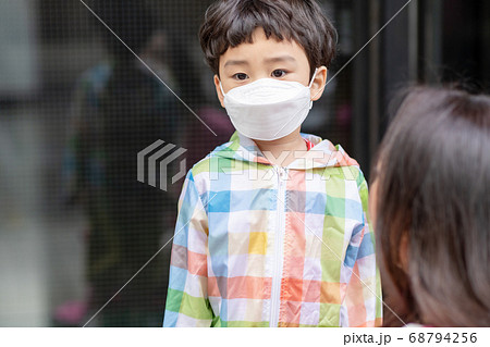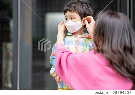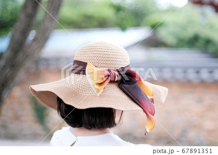 準備出門的年輕女子鏡子鏡子衣服幸福的微笑