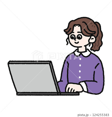 筆記型電腦、人物、線描