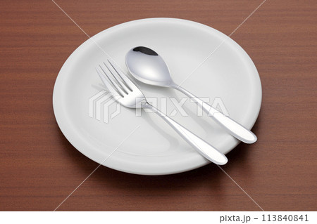 簡單的白盤、叉、刀