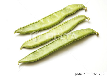 水彩畫描繪了刀豆:豆莢、葉子和豆粒