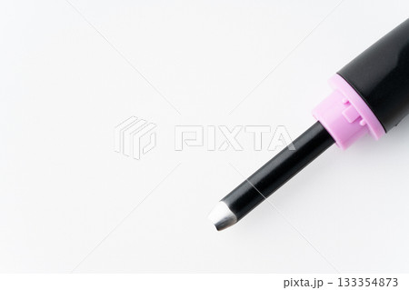 白色背景上的雕刻刀(小型圓刀)刀刃背面特寫