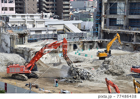 使用重型機械進行建築物拆除工作:混凝土破碎