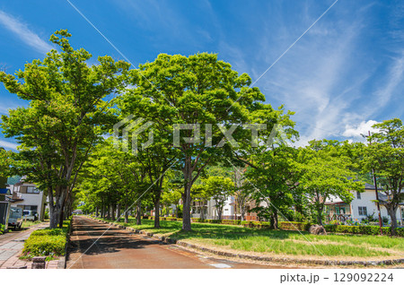 滋賀縣高島市牧野町湖西線牧野站前的林蔭道