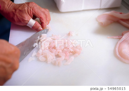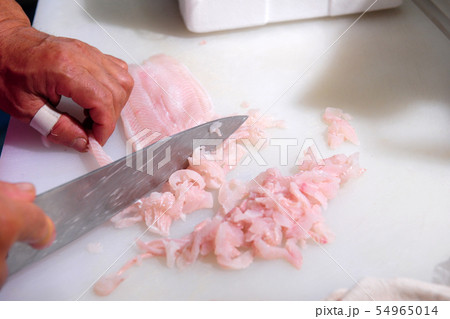 新鮮的魚刺身,切成薄片的and魚並用花裝飾