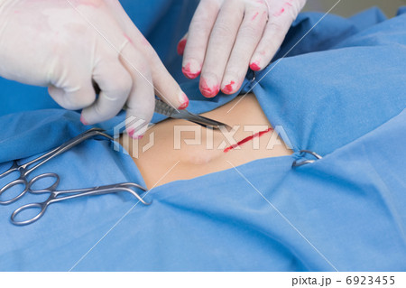 Veterinarian doing surgery. Veterinarian open wound for surgery. Veterinary work at animal hospital.