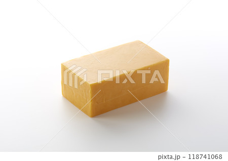 piece of cheddar cheese on a cutting board isolated on a white background.