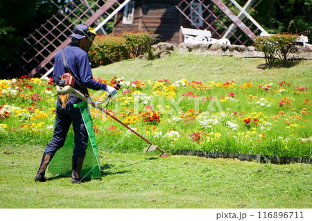 使用公園修剪機和割草機除草