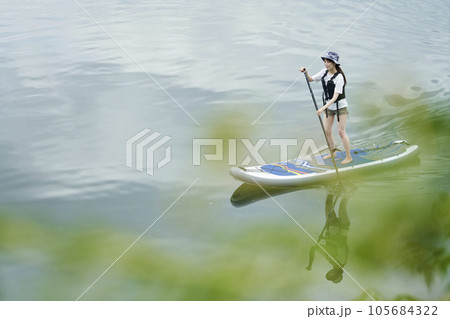 SUP 一對年輕夫婦享受 SUP 的插圖