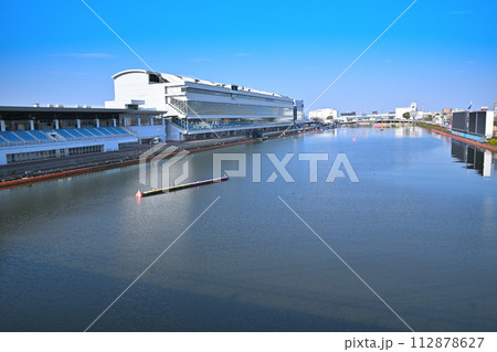 藍天白雲下的三國賽艇場外觀圖片 | 賽艇場圖 | 福井縣堺市