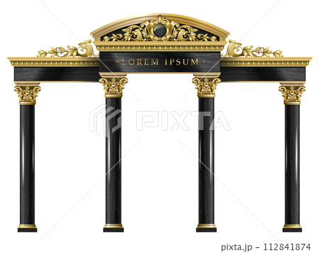 A classical Roman colonnade of marble columns lines a corridor in a city, a structure of ancient design