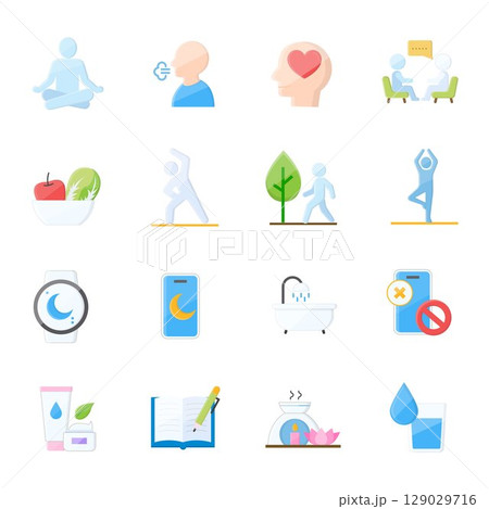 Wellness Lifestyle Icon Set Flat Pastel Design
