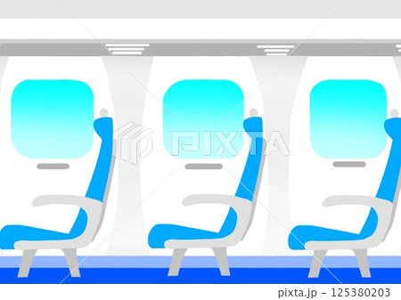 正在運行的地鐵內部的插圖 [座位、座位、欄杆、火車、火車]