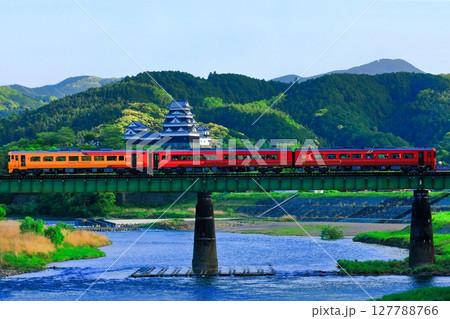 [愛媛縣]穿越大洲城和Hijikawa橋的觀光火車(Iyonada Monogatari)