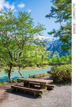 上高地壯麗景色:「白雪皚皚的穗高山脈和清澈的梓川」(長野縣松本市)