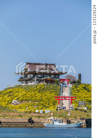 「青森縣」蕪島八戶市的春天,油菜花盛開