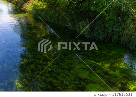 高知縣仁澱川町鮮綠的中津溪谷(仁澱藍)
