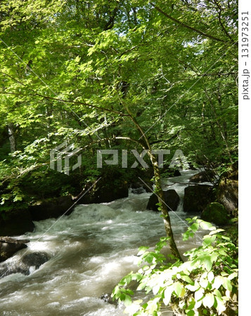 【清爽的上高地/初夏的絕景】從河童橋附近眺望穗高連峰,綠意盎然