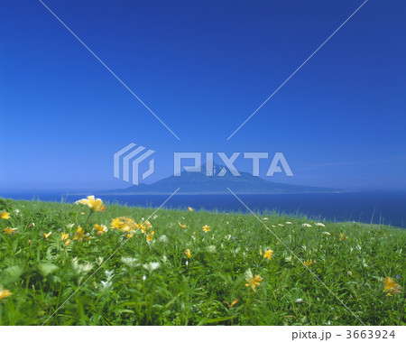 從Rebunjima上升的島利尻島利尻富士山景觀