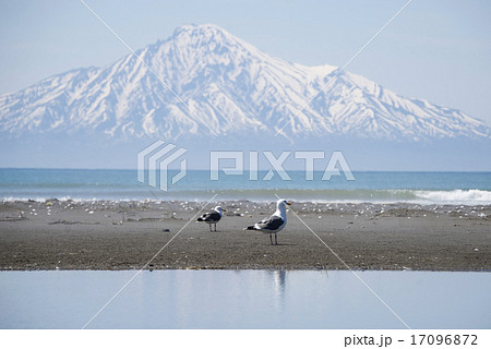 從稚內岬野寒布眺望白雪皚皚的利尻富士