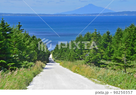 利尻島在日落時漂浮在日本海,夏季景觀,八月