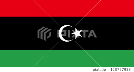 Libya National waving Flag Crescent Star on Black Central Stripe