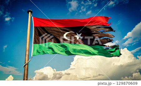 The flag of Libya features horizontal stripes of red, black, and green, with a crescent and star in the center. It symbolizes the nation's history and unity.