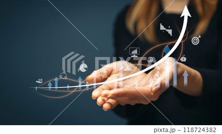 Digital Business Growth Chart: Futuristic Blue Bar Graph and Rising Arrow Visualization for Financial Success and Technology Concept Presentation
