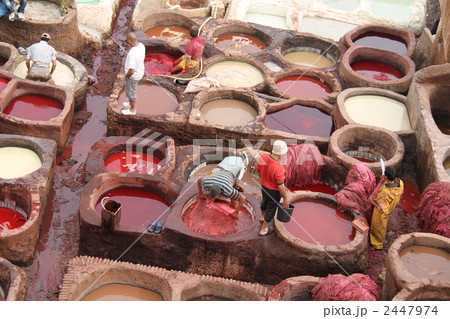 摩洛哥,菲斯,麥地那(舊城區),製革廠,皮革染色車間