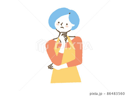 一個穿著圍裙、歪著腦袋的女人