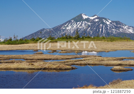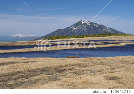 春天從尾瀨橫田代濕地看到的志布津山,山上仍殘留著積雪。