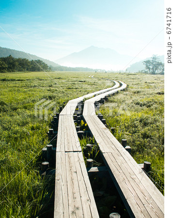 初夏時節,尾瀨之原的木板路和笠岳的景色