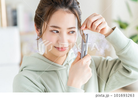 一個女人穿衣服的插圖_用抹子設置頭髮