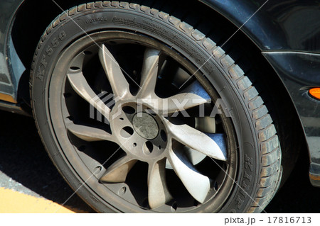 Scooter front wheel close up