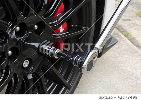 用扭矩扳手擰緊車輪螺母