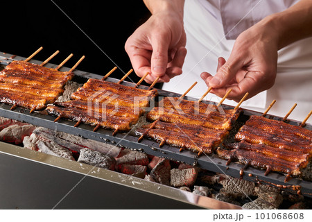 鰻魚、鰻魚飯碗、鰻魚碗的手繪插畫集