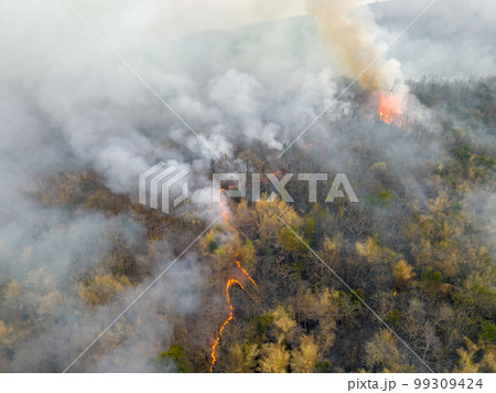 Forest fires release carbon dioxide and other greenhouse gasses, such as methane into the atmosphere. Carbon emissions come from deforestation.