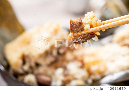 粽子 整串粽子 吃粽子 夾粽子 特寫 端午節 A bunch of Zongzi ひとふさの粽