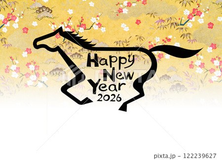 帶有“馬”字的馬印章風格插圖(方形)新年賀卡材料