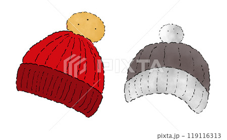 帶有簡單變形絨球的紅色針織帽插圖