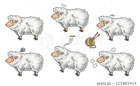 不同狀態的綿羊人物插圖集