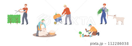 Man Farmer Character Engaged in Agriculture Work Vector Set
