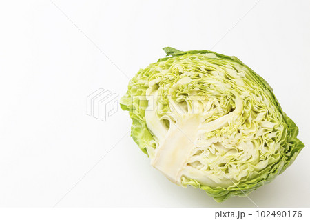 sliced cabbage on white background