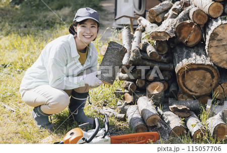 一個女人看著砍柴、農活