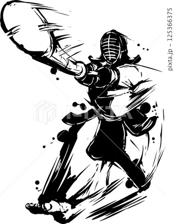 劍道選手的水墨畫插圖