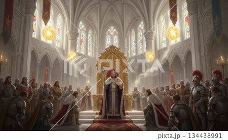 King Standing in Coronation Ceremony Holding Scepter and Globus Cruciger